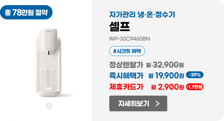 청호나이스㈜ (이하 “회사”)는 다이렉트 제품 구매 신청 시 이용자로부터 동의를 받아 개인정보를 처리하고 있습니다.