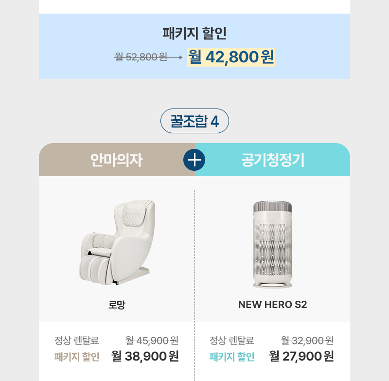 패키지로 렌탈료 할인 받으신 제품도 소유권이전 후 동종 제품으로 교체하실 경우, 장기 사용 혜택이
